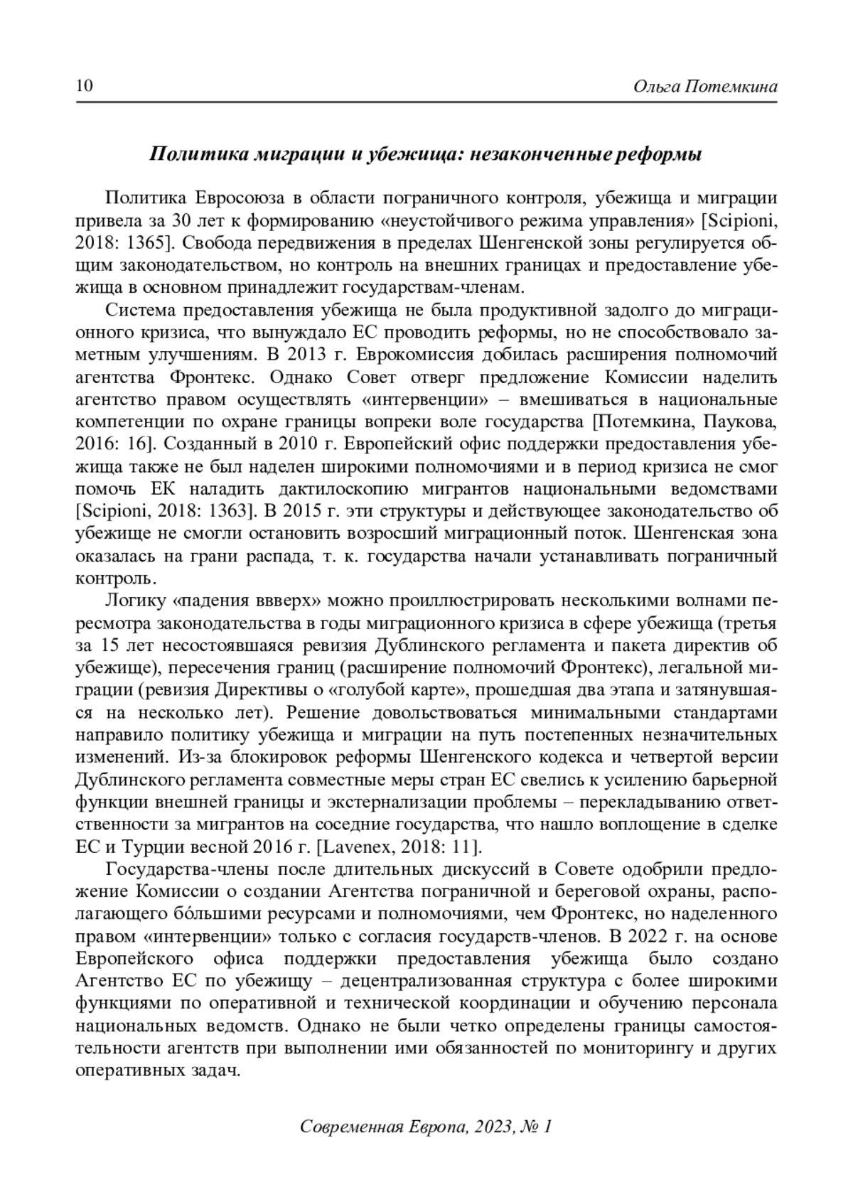 14. Scipioni M. (2018) Failing forward in EU migration policy? EU integration after the 2015 asylum and migration crisis. Journal of European Public Policy. Vol. 25. No. 9. P. 1357-1375. DOI: 10.1080/13501763.2017.1325920