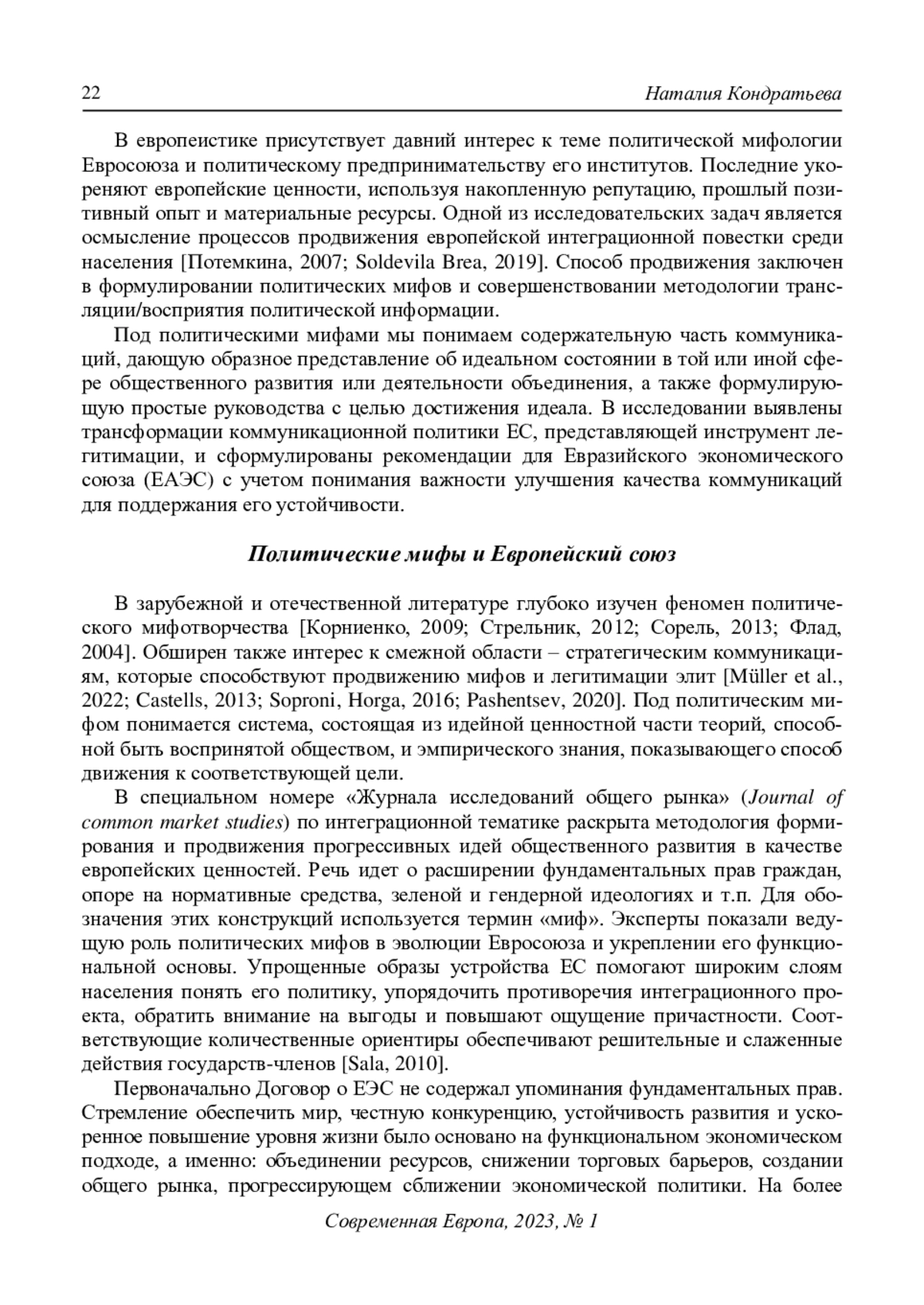 17. Sala V.D. (ed.) (2010) Special Issue:Political Myth, Mythology and the European Union. Journal of Common Market Studies. No.48(1). 190 p.
