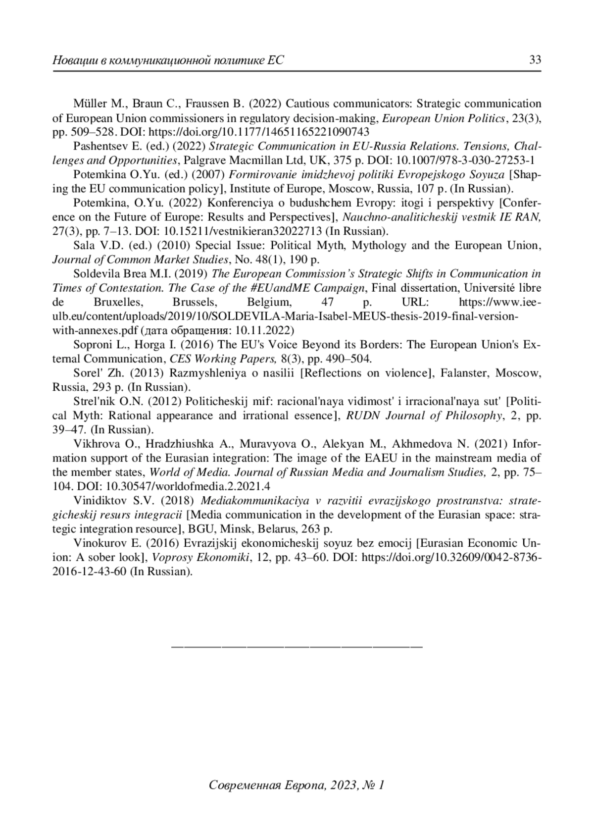 18. Soldevila Brea M.I. (2019) The European Commission’s Strategic Shifts in Communication in Times of Contestation. The Case of the EU and ME Campaign. Final dissertation. Université libre de Bruxelles, Brussels, Belgium. 47 p. URL: https://www.iee-ulb.eu/content/uploads/2019/10/SOLDEVILA-Maria-Isabel-MEUS-thesis-2019-final-version-with-annexes.pdf (дата обращения: 10.11.2022).