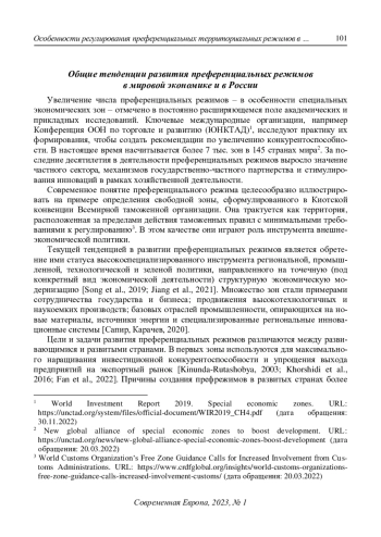 Увеличение числа преференциальных режимов – в особенности специальных экономических зон – отмечено в постоянно расширяющемся поле академических и прикладных исследований. Ключевые международные организации, например Конференция ООН по торговле и развитию (ЮНКТАД)1, исследуют практику их формирования, чтобы создать рекомендации по увеличению конкурентоспособности. В настоящее время насчитывается более 7 тыс. зон в 145 странах мира2. За последние десятилетия в деятельности преференциальных режимов выросло значение частного сектора, механизмов государственно-частного партнерства и стимулирования инноваций в рамках хозяйственной деятельности