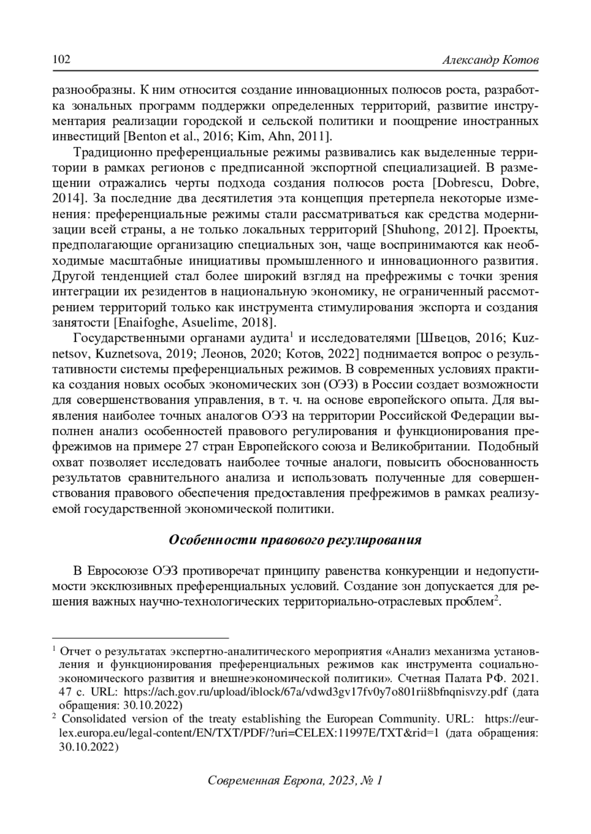2. Кузнецова О.В. (2020) География особых экономических зон и их аналогов в России. Региональные исследования. № 4(70). С. 19-31. DOI: 10.5922/1994-5280-2020-4-2 EDN: UBLURE