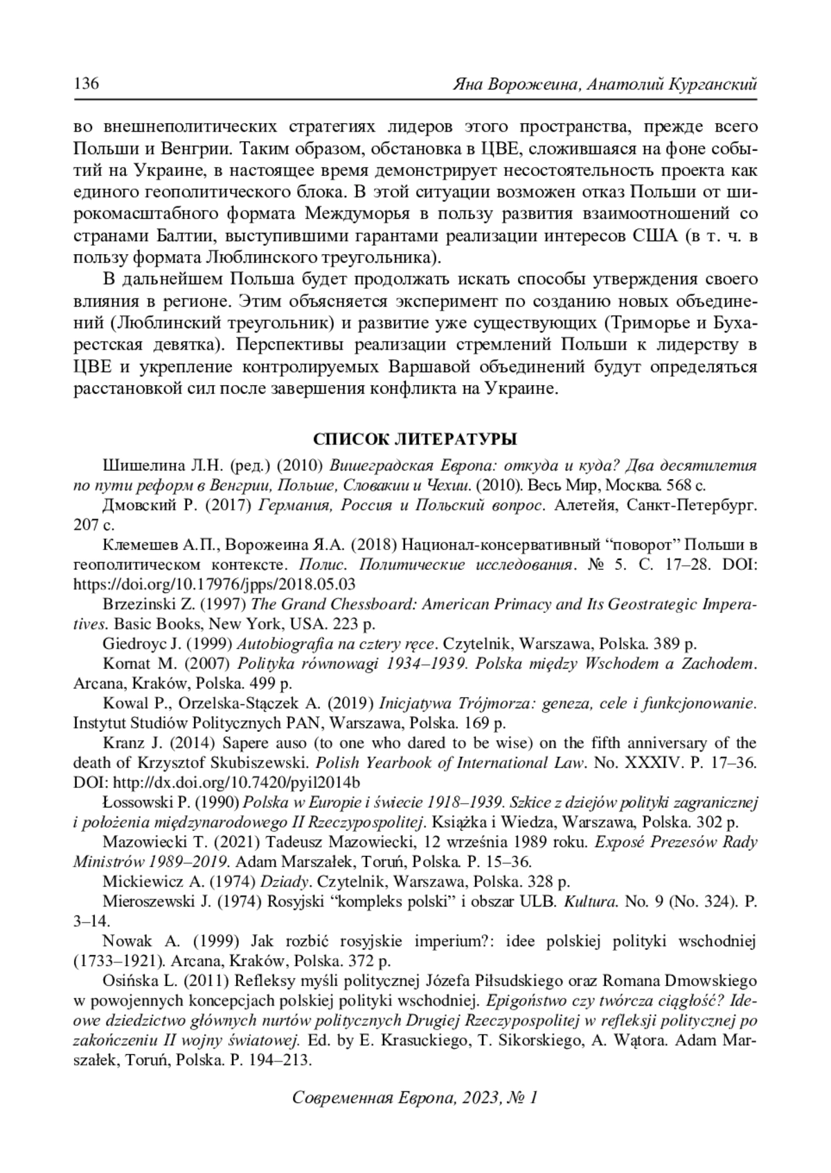 3. Клемешев А.П., Ворожеина Я.А. (2018) Национал-консервативный “поворот” Польши в геополитическом контексте. Полис. Политические исследования. № 5. С. 17-28. DOI: 10.17976/jpps/2018.05.03 EDN: YAEHWX