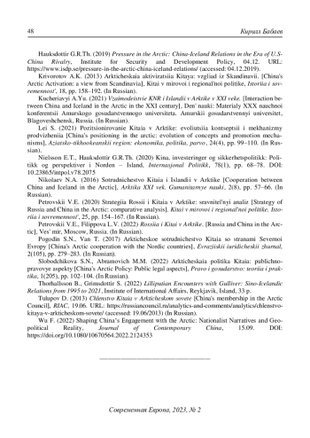 2. Криворотов А.К. (2013) Арктическая активизация Китая: взгляд из Скандинавии. Китай в мировой и региональной политике. История и современность. № 18. С. 158-192. EDN: SEDIPL