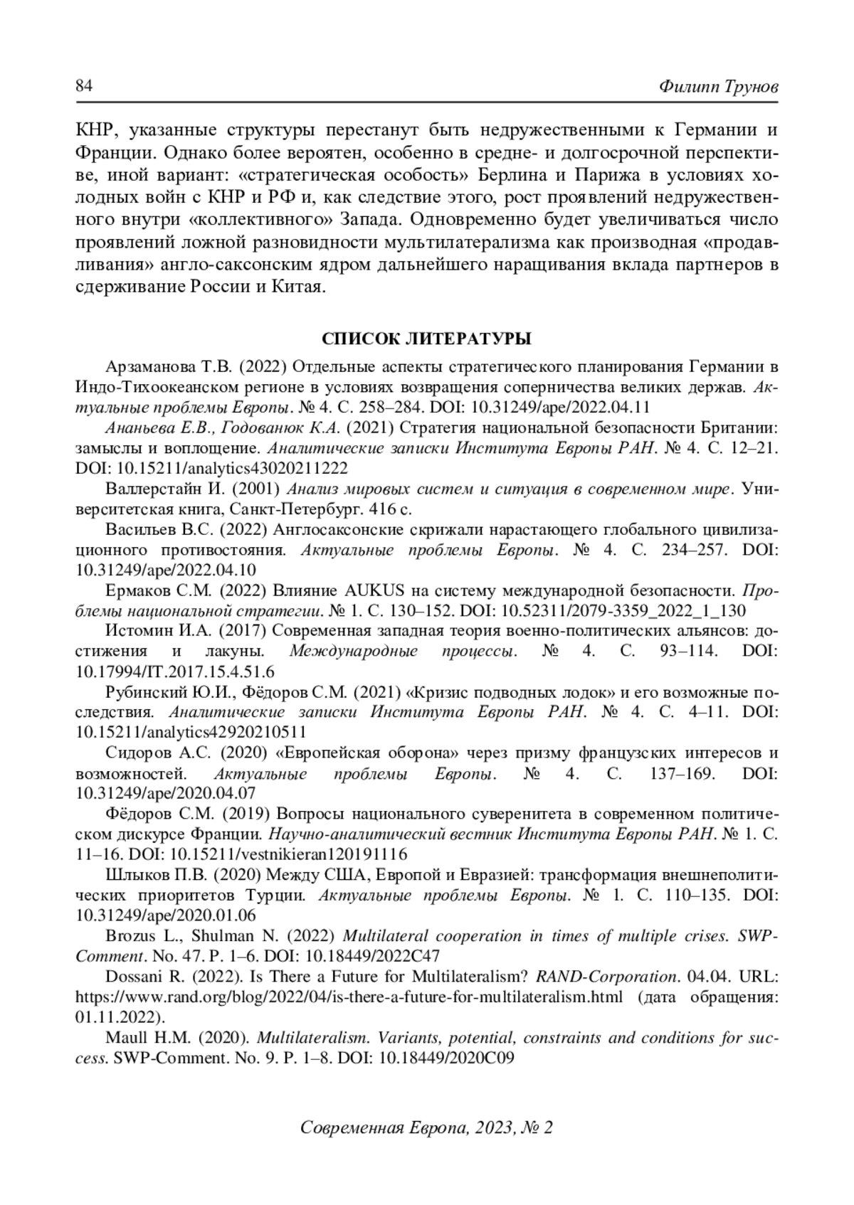 12. Dossani R. (2022). Is There a Future for Multilateralism? RAND-Corporation. 04.04. URL: https://www.rand.org/blog/2022/04/is-there-a-future-for-multilateralism.html (дата обращения: 01.11.2022).