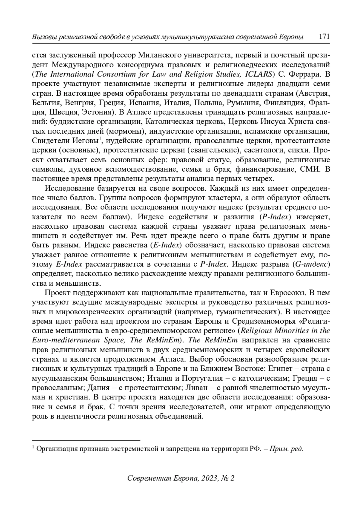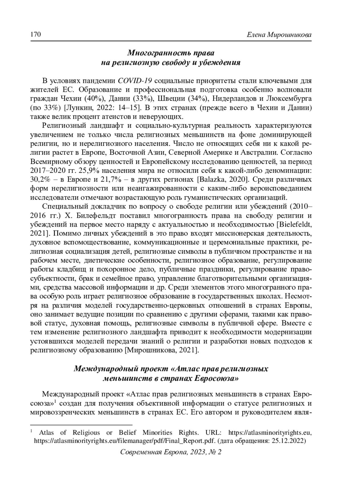 5. Bielefeldt H. (2021) Freedom of Religion in Europe Today: Under Critical Investigation. ISFORB Conference Leuven, 06-07 May 2021. Freedom of Religion in Europe Today. URL: https://www.etf.edu/event/freedom-of-religion-in-europe-today-under-critical-investigation/(accessed: 25.12.2022).