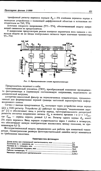 Выбранная функциональная схема многоканального фотомодуля позволяет реализовать высокую обнаружительную способность сернисто-свинцового фоторезистора с темновым сопротивлением от 0,5 МОм и выше и постоянной времени фотоответа до 1000 мкм.