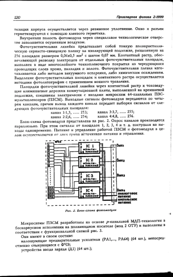 Рассмотрена конструкция фотомодуля, состоящего из 256-элементного сернисто-свинцового фоторезистора и микросборок предварительного усиления и коммутации, выполненных на основе 64-канальных ПЗС мультиплексоров (ПЗСМ), дан анализ функциональной схемы, приведены основные параметры.