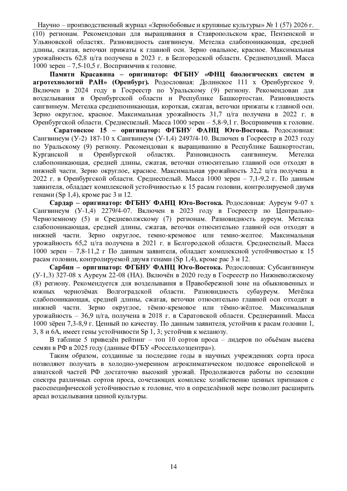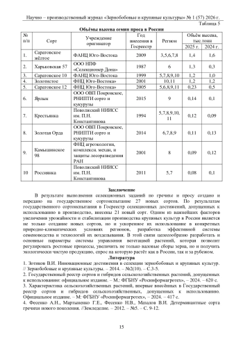 2. Государственный реестр сортов и гибридов сельскохозяйственных растений, допущенных к использованию: официальное издание. - М.: ФГБНУ “Росинформагротех”, - 2024. - 620 с.
