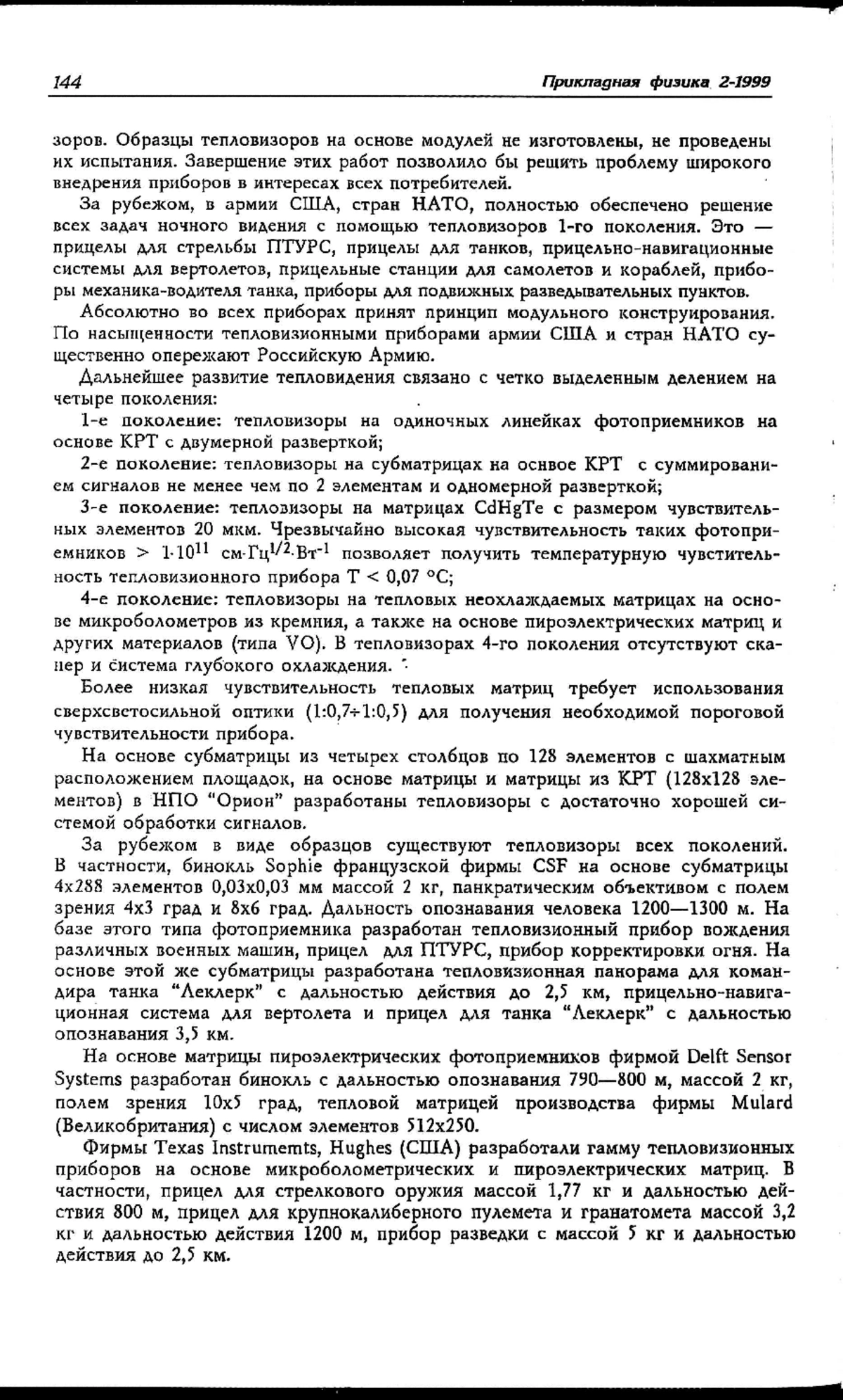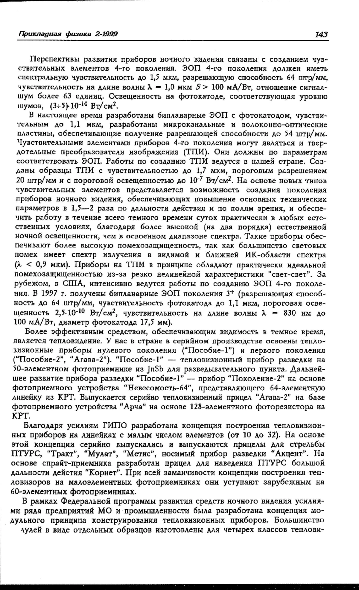 В России особенно быстрыми темпами велись работы по созданию приборов гражданского применения, которые интенсивно покупаются за рубежом. Количество разработок ПНВ и ТПВ традиционными разработчиками и вновь возникшими на базе традиционных предприятий уже перевалило за сотню. Бурно проводились также работы по созданию приборов гражданского применения, которые интенсивно покупаются за рубежом. К сожалению, ничего нового в этих разработках нет.
