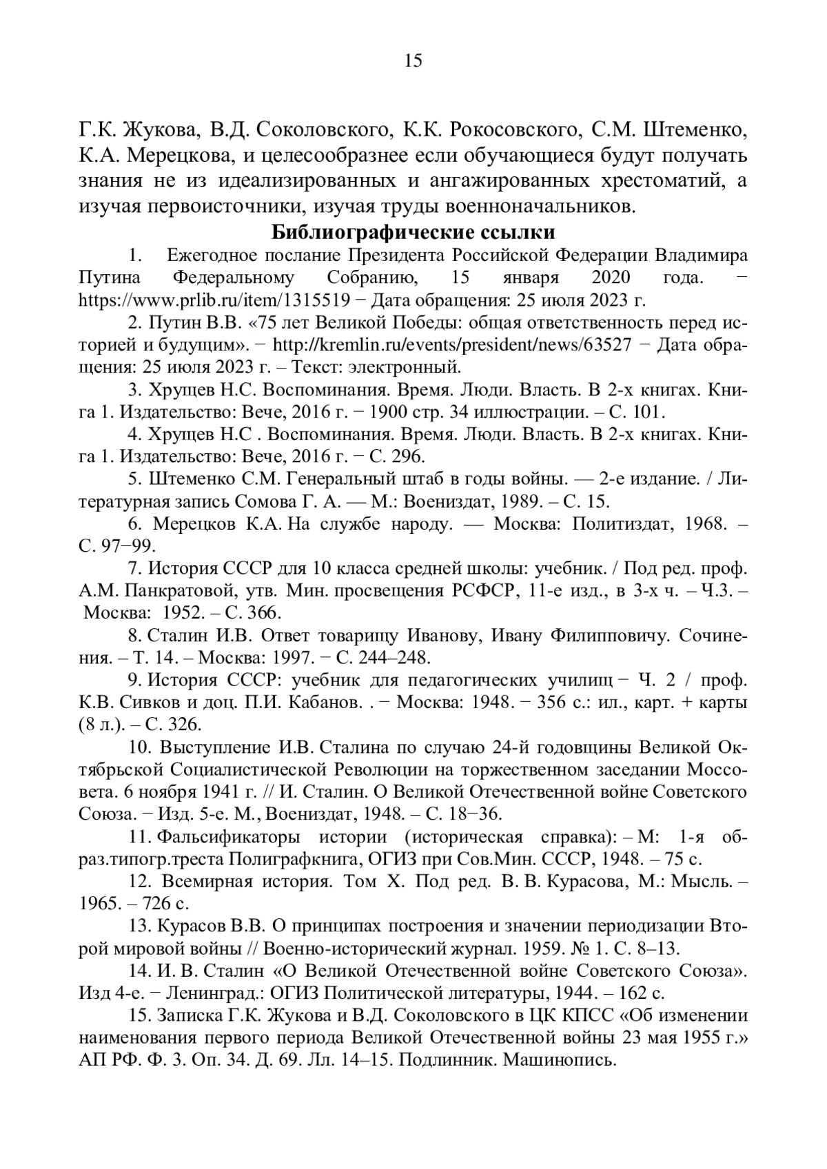 2. Путин В.В. “75 лет Великой Победы: общая ответственность перед историей и будущим”. - http://kremlin.ru/events/president/news/63527.