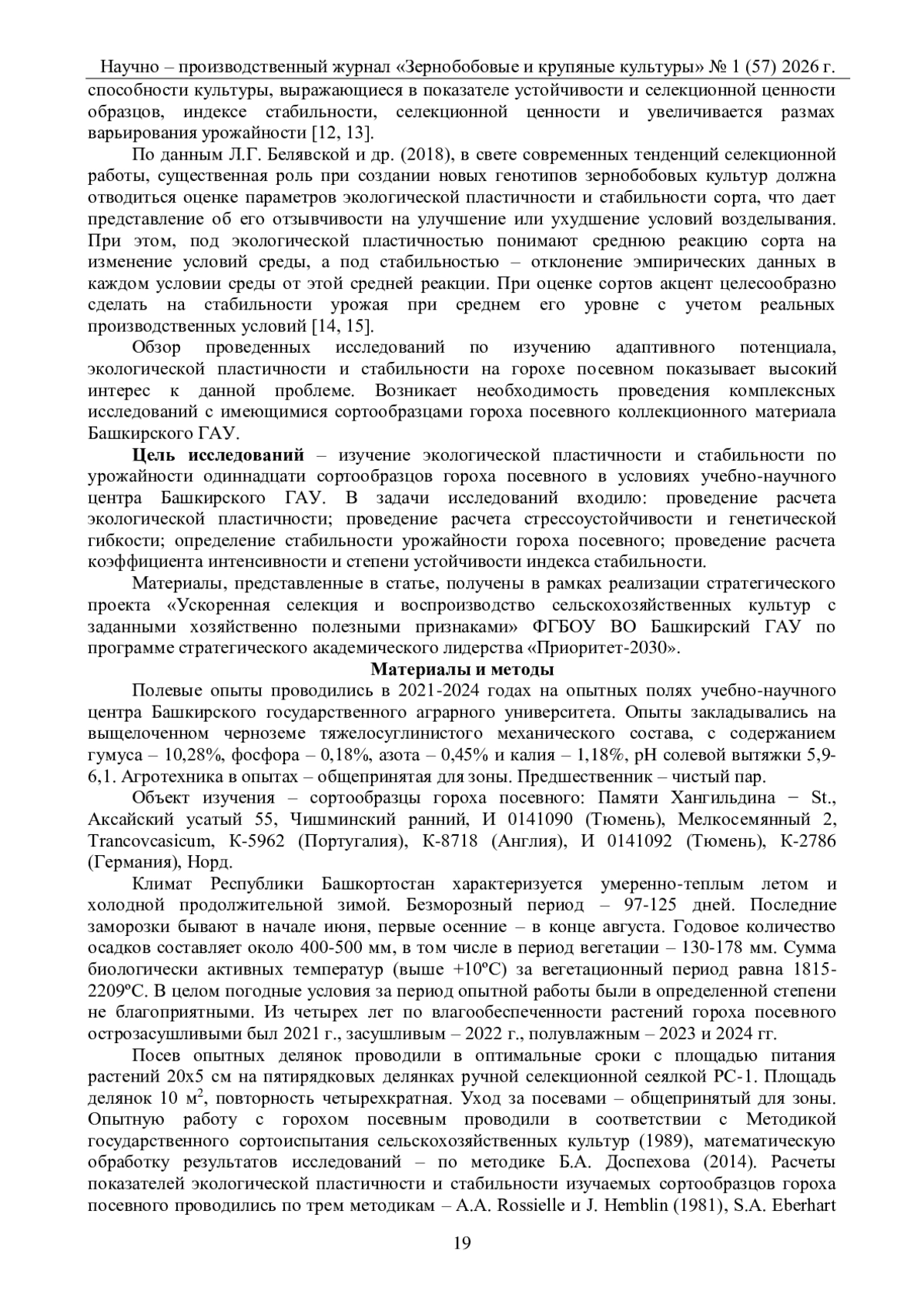 1. Шакирзянова М. Экологическая пластичность и стабильность перспективных линий гороха. // Вестник Казанского государственного аграрного университета. - 2022. - 16(4). - С. 42-46. DOI: 10.12737/2073-0462-2022-42-46