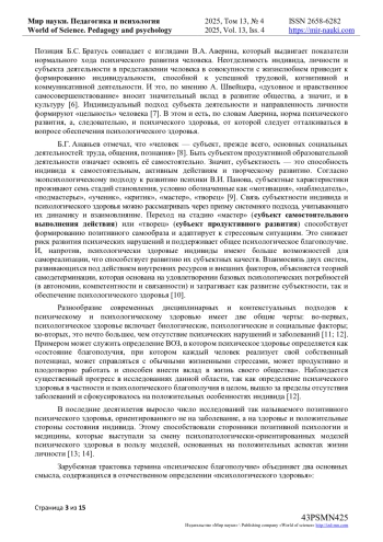 2. Дубровина И.В. Психологическое здоровье личности в контексте возрастного развития / И.В. Дубровина // Развитие личности. - 2015. - № 2. - С. 1-29. - URL: item.asp?id=23816158 (дата обращения: 05.06.2025). EDN: UBEKAT