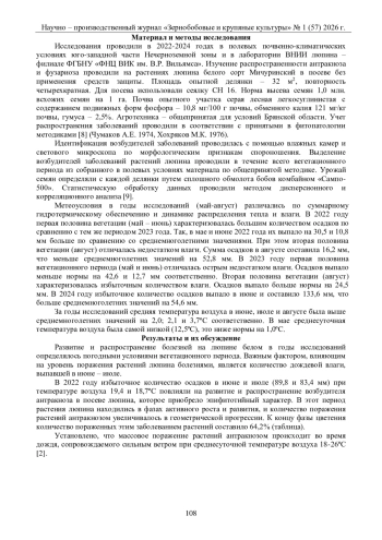 В ходе исследований изучены фенологические особенности развития растений, морфологические признаки, элементы структуры урожая и показатели продуктивности. Для оценки засухоустойчивости использован комплекс интегральных индексов (STI, GMP, HM, MP, TOL, SSI, K1SYI, K2SY), а также проведён корреляционный анализ взаимосвязей между урожайностью и индексами устойчивости в стрессовых и благоприятных условиях.