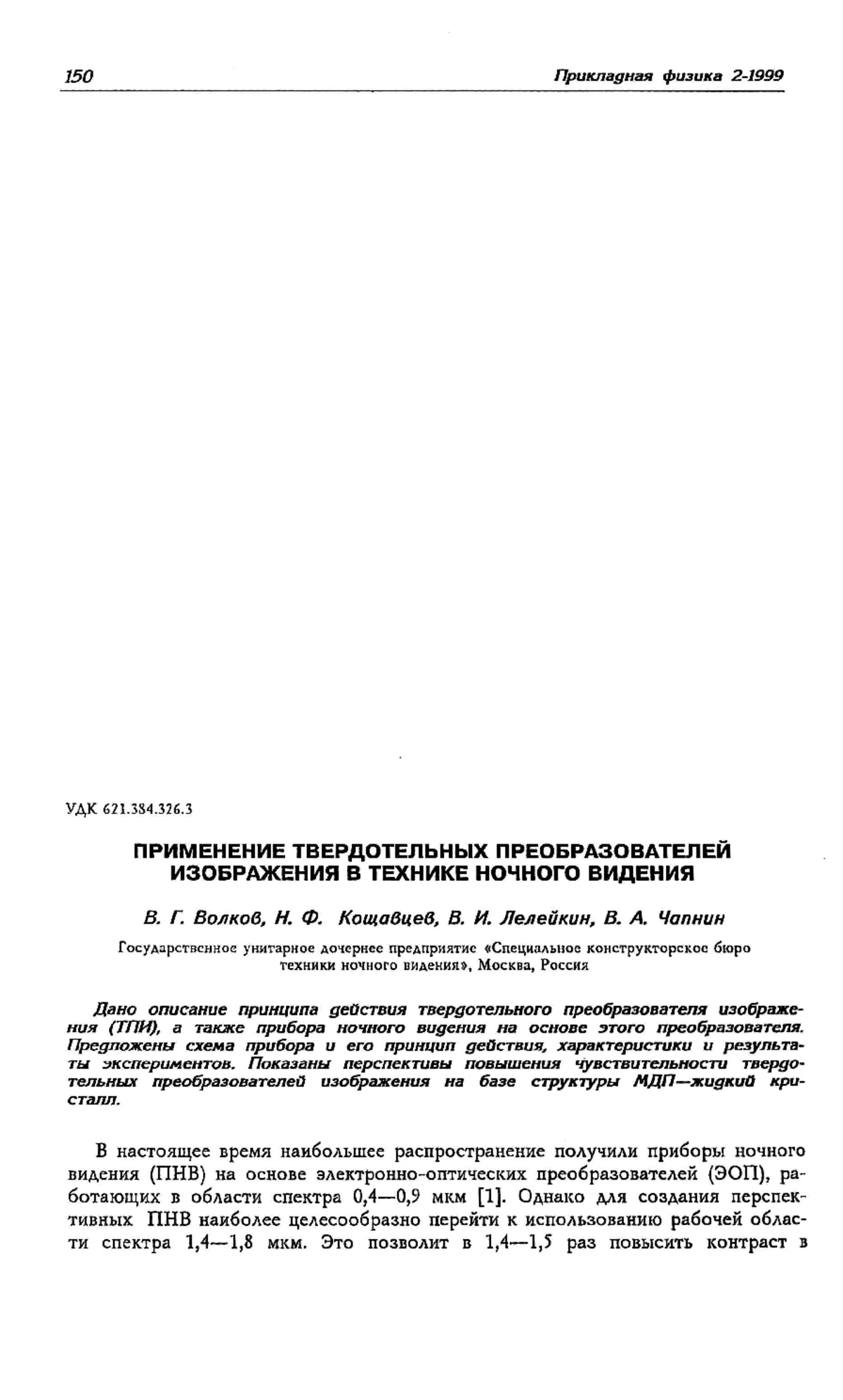 2. А л е к с а н д р о в и ч С. В., А н т о н о в В. А., Г р и г о р ь е в В. А., К о щ а в е в Н. Ф., К о м п а н е ц И. Н., П а р ф е н о в А. В., С а в в и н а Р. М., С а в е л ь е в В. А. Преобразование изображений ИК- диапазона (длина волны свыше 1,1 мкм) фоточувствительной жидкокристаллической структурой//Краткие сообщения по физике, 1992. N 7, 8. С. 3-8.
