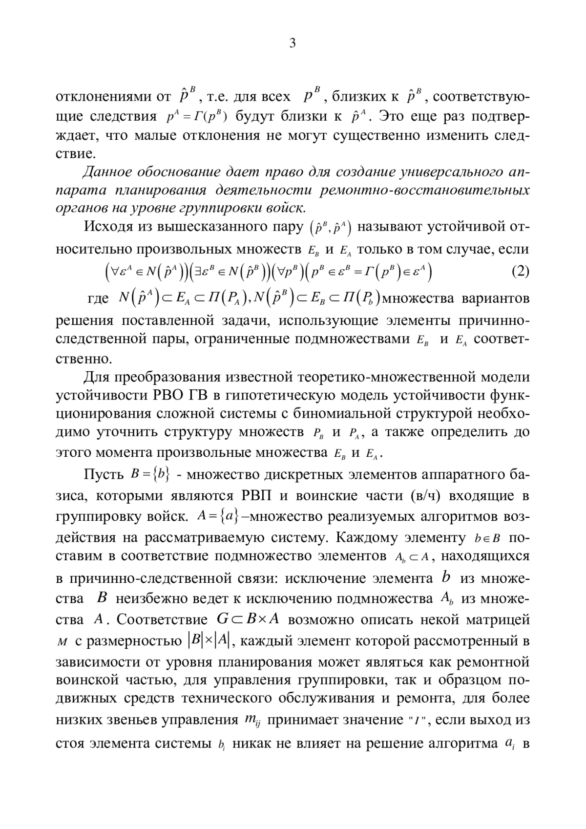 В рамках настоящей статьи рассматривается множество всех подмножеств элементов системы ремонтно - восстановительных органов группировки войск на основе опущения о том, что в рассматриваемых подмножествах есть по меньшей мере одна переменная или функция с множеством значений (ложь или истина), определенная на некотором множестве