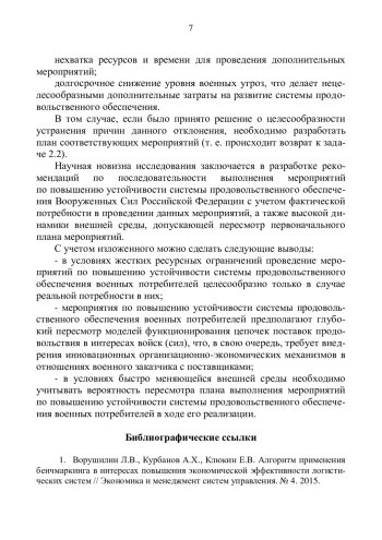 3. Ворушилин Л.В., Курбанов А.Х., Шолохов А.В. Аграрные фильеры как инструмент обеспечения устойчивости продовольственного снабжения Вооруженных Сил Российской Федерации // Вестник “АПК” Ставрополья. № 1. 2016. EDN: VSCWAL