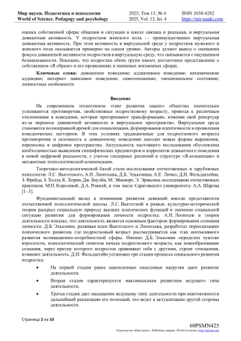 На современном техногенном этапе развития нашего общества значительно усиливаются противоречия, свойственные подростковому возрасту, приводя к различным отклонениям в поведении, которые претерпевают трансформацию, изменяя свой репертуар из-за переноса девиантной активности в виртуальное пространство.