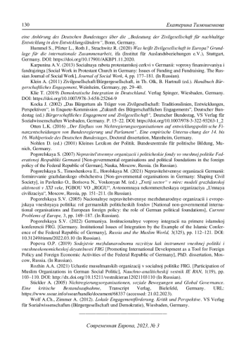 12. Klein A. (2011) Zivilgesellschaft/Bürgergesellschaft. Handbuch Bürgerschaftliches Engagement. Ed. by Th. Olk, B. Hartnuß. Beltz Juventa, Weinheim, Germany. P. 29-40.
