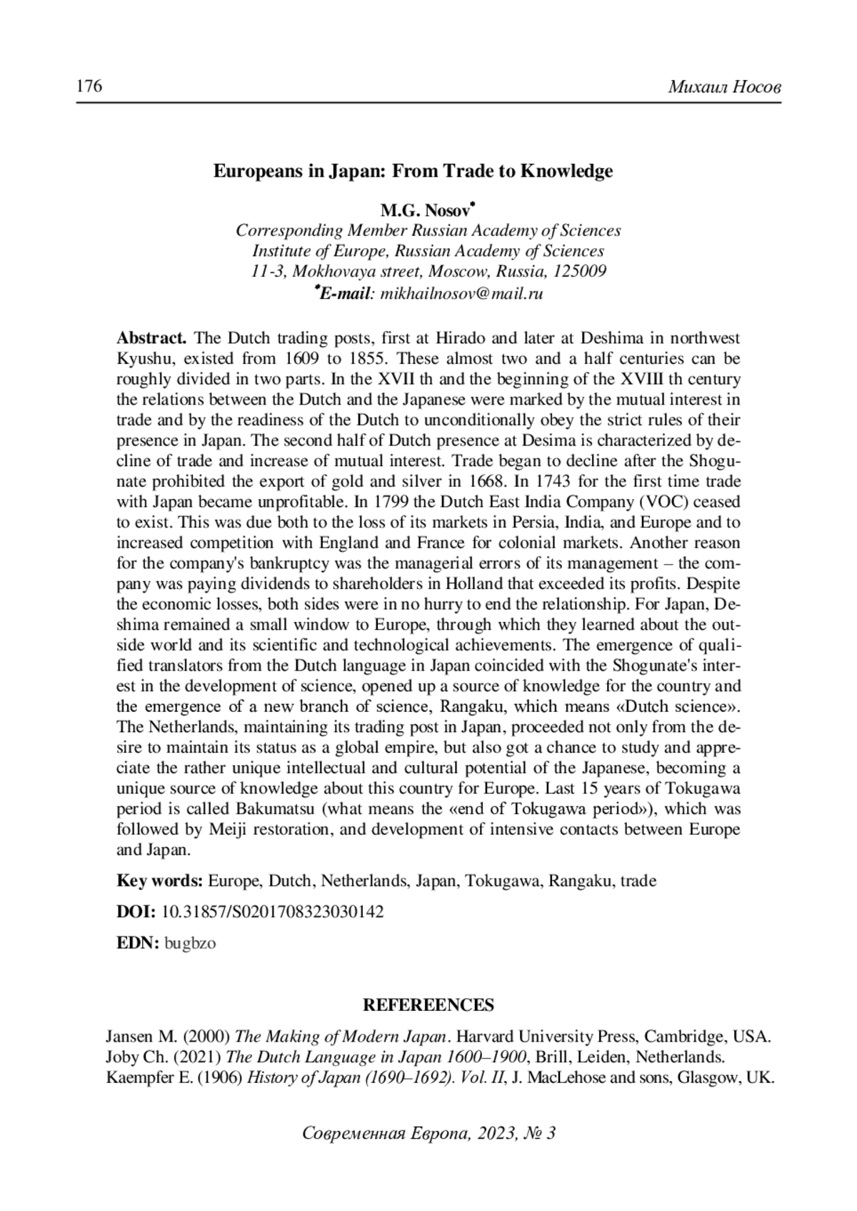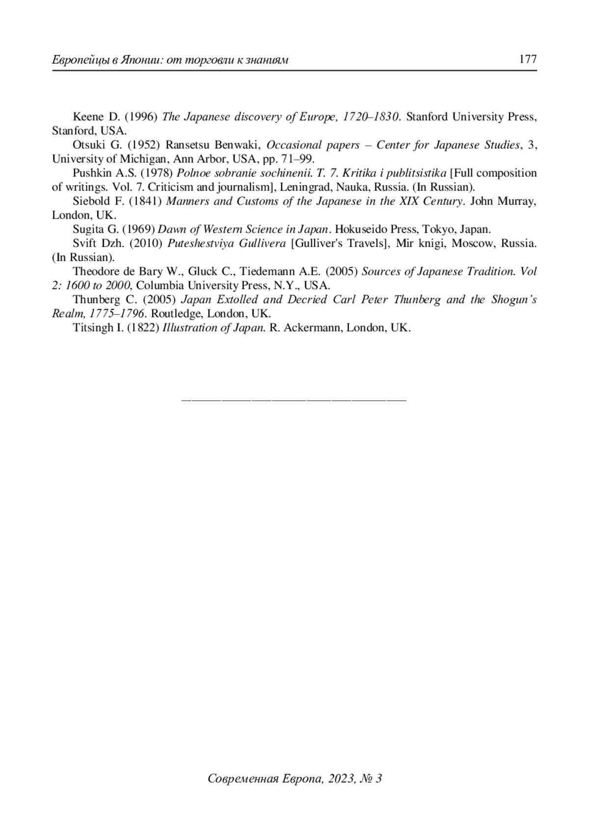 6. Keene D. (1969) The Japanese discovery of Europe, 1720-1830. Stanford University Press, Stanford, USA. 272 p.