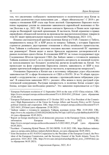 2. Болгова И., Мельникова Ю., Лисякевич Р. (2022) Формирование китайского направления политики ЕС: роль стран Центральной и Восточной Европы. Мировая экономика и международные отношения. Т. 66. № 6. С. 79-90. DOI: 10.20542/0131-2227-2022-66-6-79-90 EDN: MNLATP