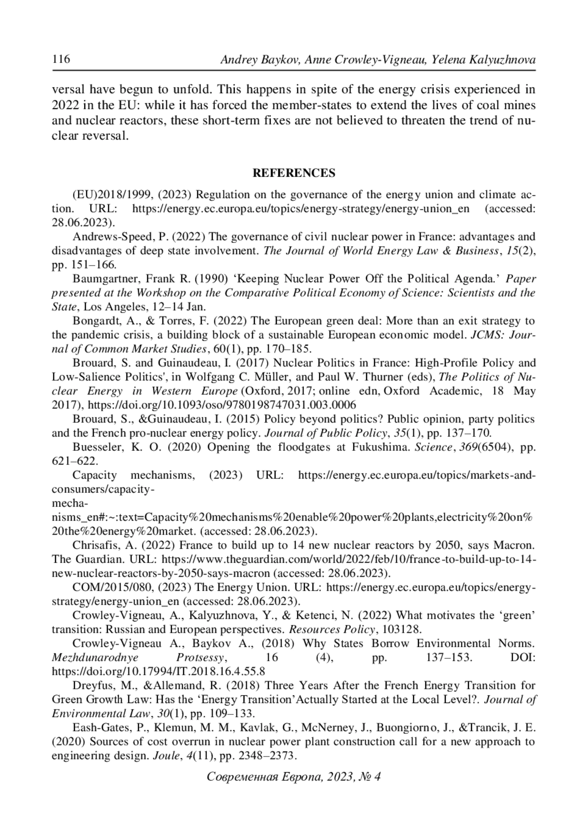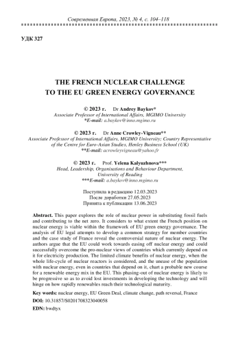 2. Andrews-Speed, P. (2022) The governance of civil nuclear power in France: advantages and disadvantages of deep state involvement. The Journal of World Energy Law & Business, 15(2), pp. 151-166. EDN: VXZDMH