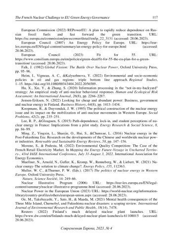 32. Reuters (2022) Finland’s much delayed nuclear plant launches. URL: https://www.dw.com/en/finlands-much-delayed-nuclear-plant-launches/a-61108015 (accessed: 28.06.2023).