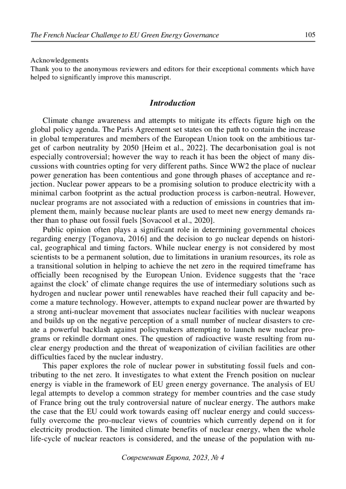 11. Crowley-Vigneau, A., Kalyuzhnova, Y., & Ketenci, N. (2022) What motivates the ‘green’ transition: Russian and European perspectives. Resources Policy, 103128. EDN: DEOXPL