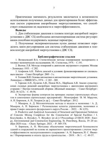 5. Терехин А.Н., Кулагин А.В., Попов М.А., Щербаков А.В. Анализ существующих схемных решений анаэробных энергоустановок с двигателями внутреннего сгорания // Научно - технический сборник “Военный инженер” - Санкт-Петербург: 2022. № 1(23). - С. 48-56.