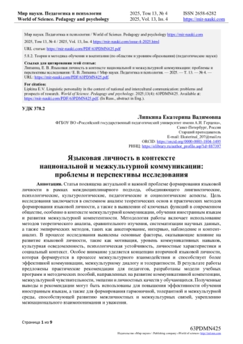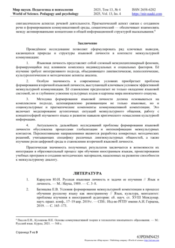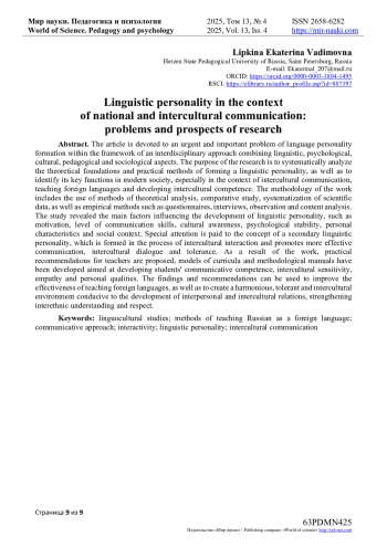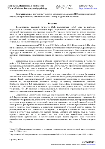 Формирование языковой личности (ЯЛ) представляет собой одну из наиболее актуальных и сложных задач, стоящих перед современной лингвистикой, психологией и методикой преподавания иностранных языков.