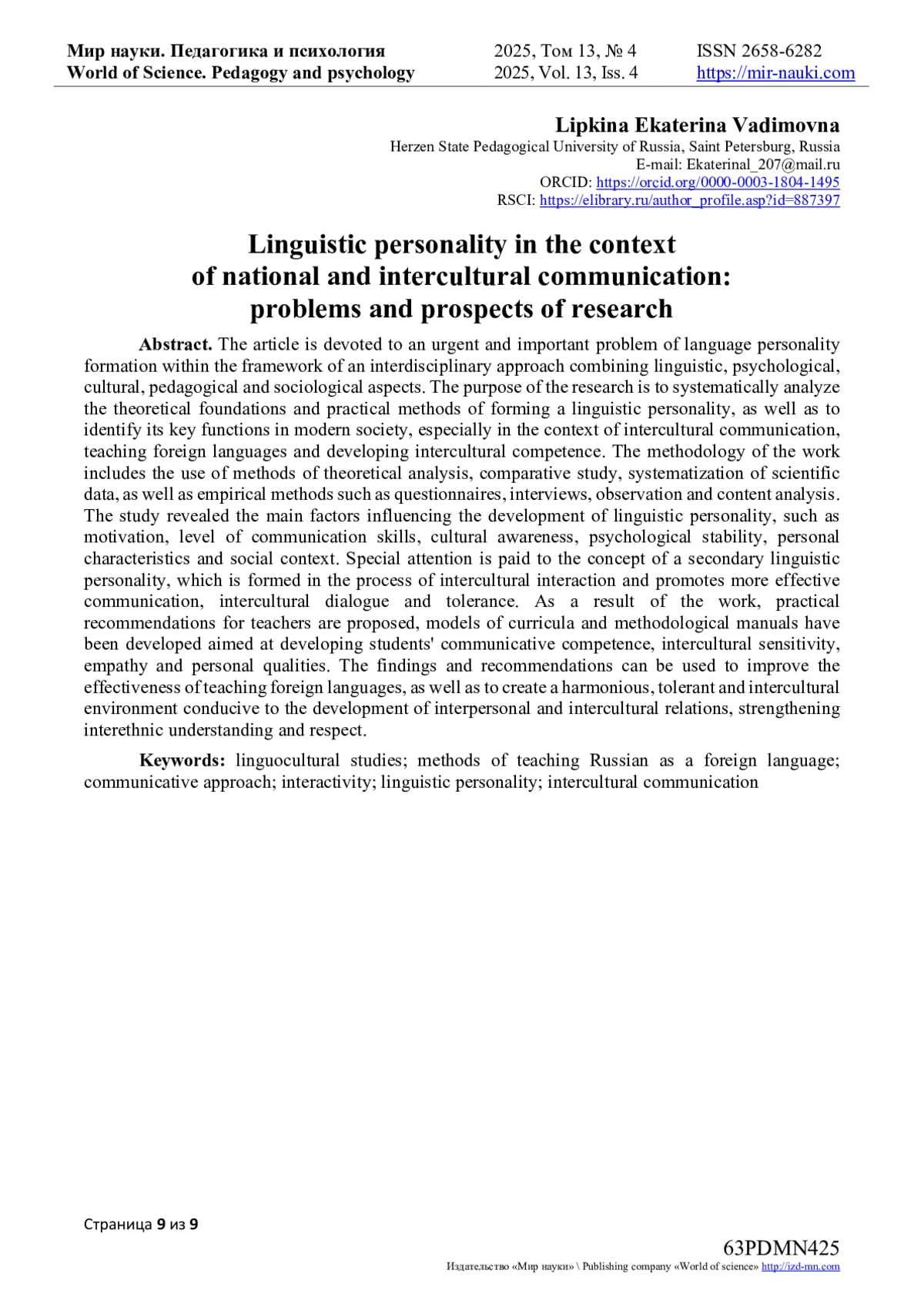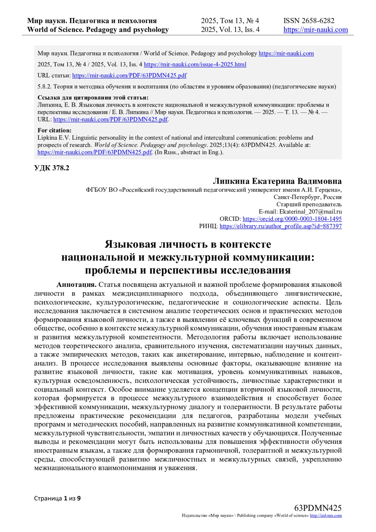 - ИЗДАТЕЛЬСТВО МИР НАУКИ