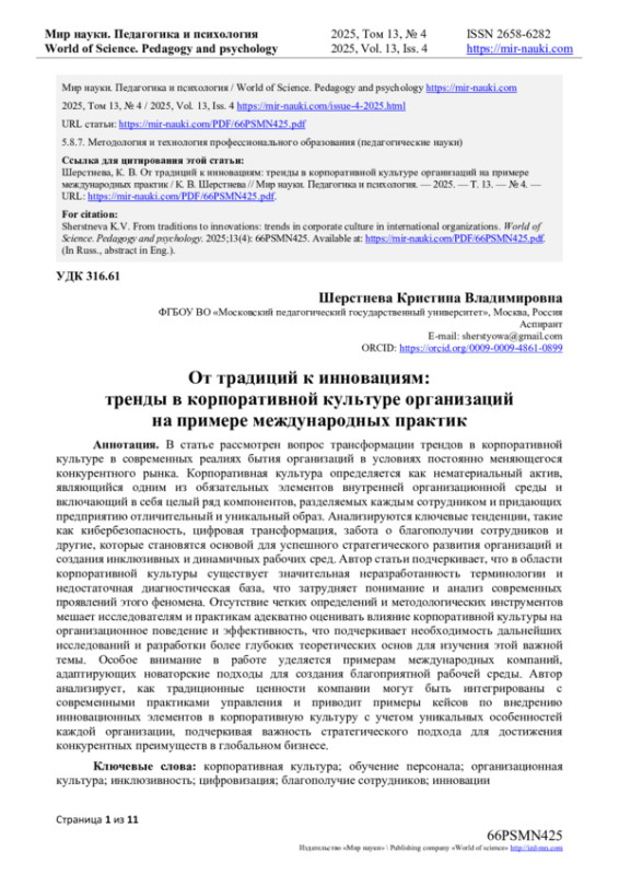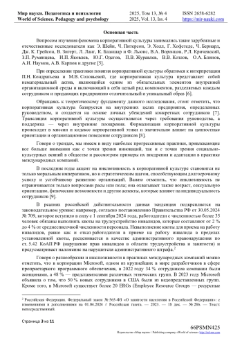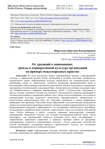 Корпоративная культура является одной из самых обсуждаемых тем в современных научных исследованиях и практиках управления. В условиях быстрого технологического прогресса и глобализации компании вынуждены сочетать традиционные ценности с инновациями [1].