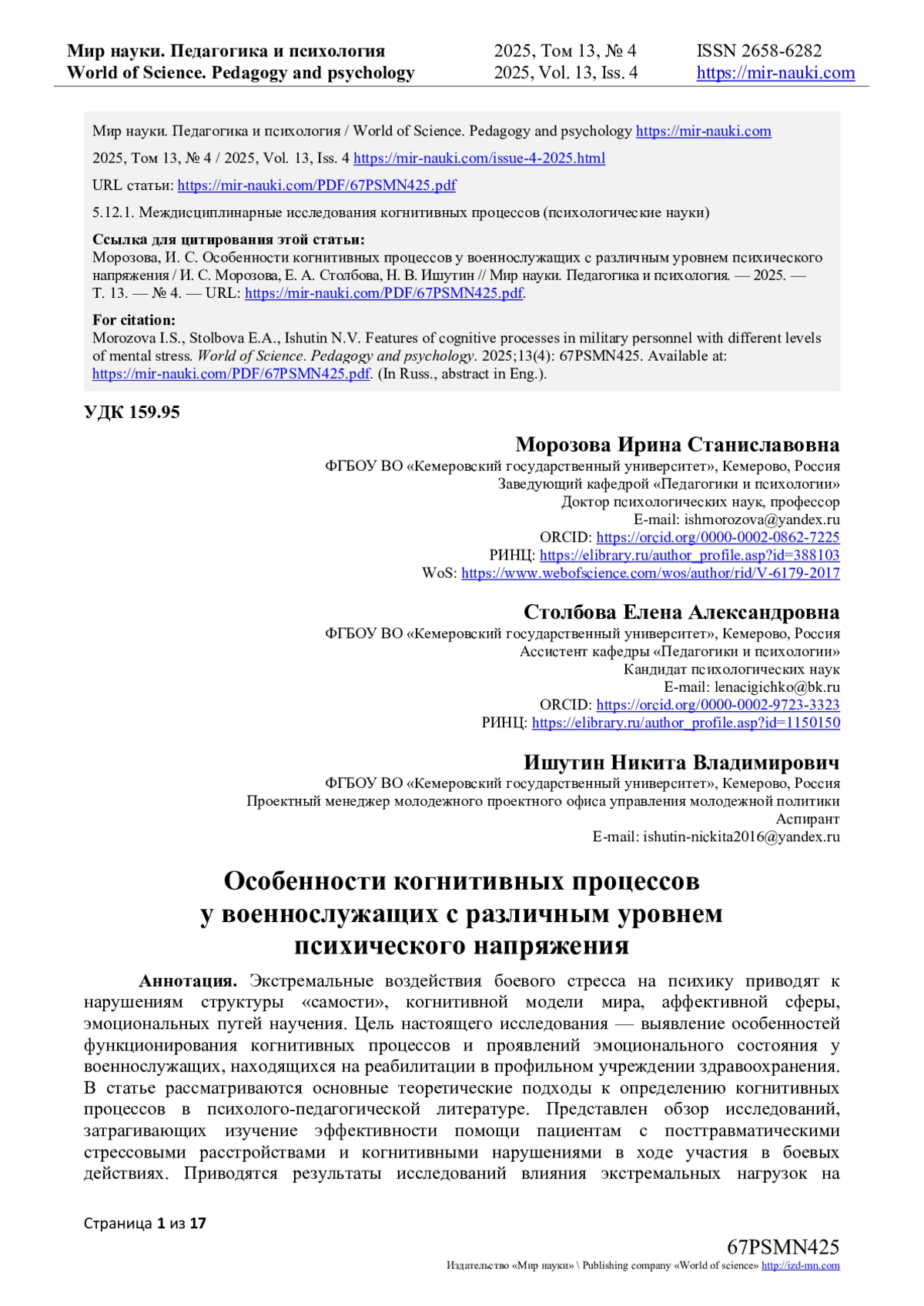 - ИЗДАТЕЛЬСТВО МИР НАУКИ