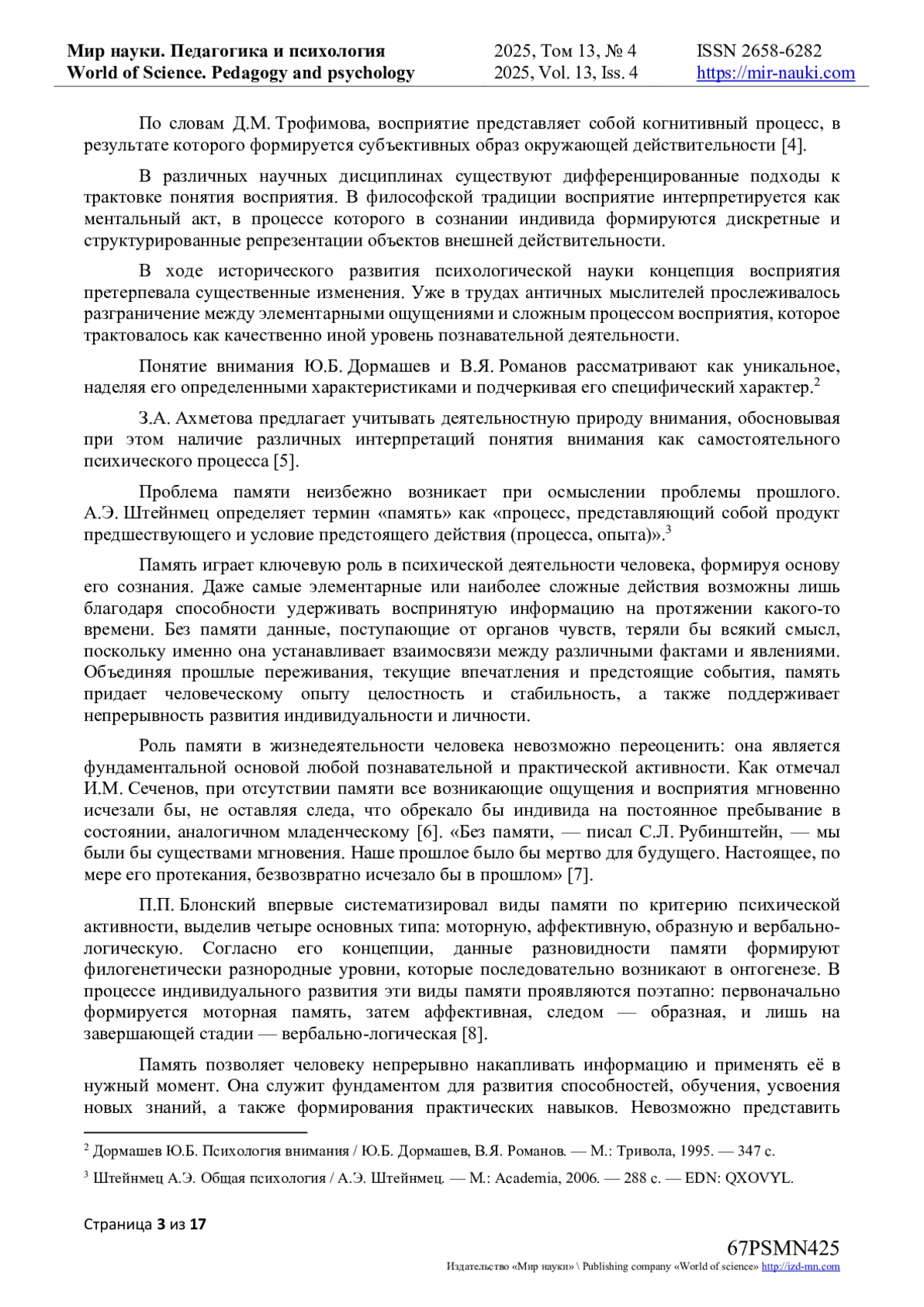 4. Трофимов Д.М. Теоретические подходы к понятию “восприятие человека” как психического процесса / Д.М. Трофимов // Вестник науки. - 2023. - № 6(63). - С. 571-580. URL: item.asp?edn=wuzdca (дата обращения: 29.07.2025). EDN: DTWHWW