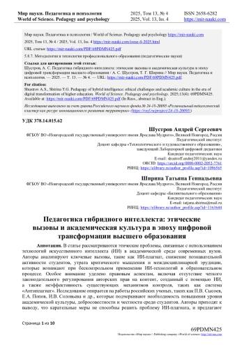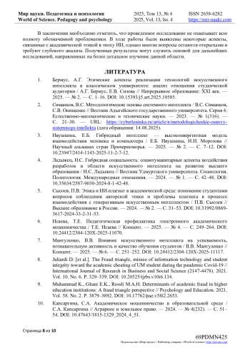 7. Мантуленко, В.В. Влияние искусственного интеллекта на успеваемость, познавательную активность и качество обучения студентов / В.В. Мантуленко // Концепт. - 2025. - № 6. - С. 251-252. DOI: 10.24412/2304-120X-2025-11117