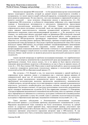 6. Исаева, Т.Е. Педагогическая профилактика электронного академического мошенничества / Т.Е. Исаева // Концепт. - 2025. - № 4. - С. 249-264. DOI: 10.24412/2304-120X-2025-11070