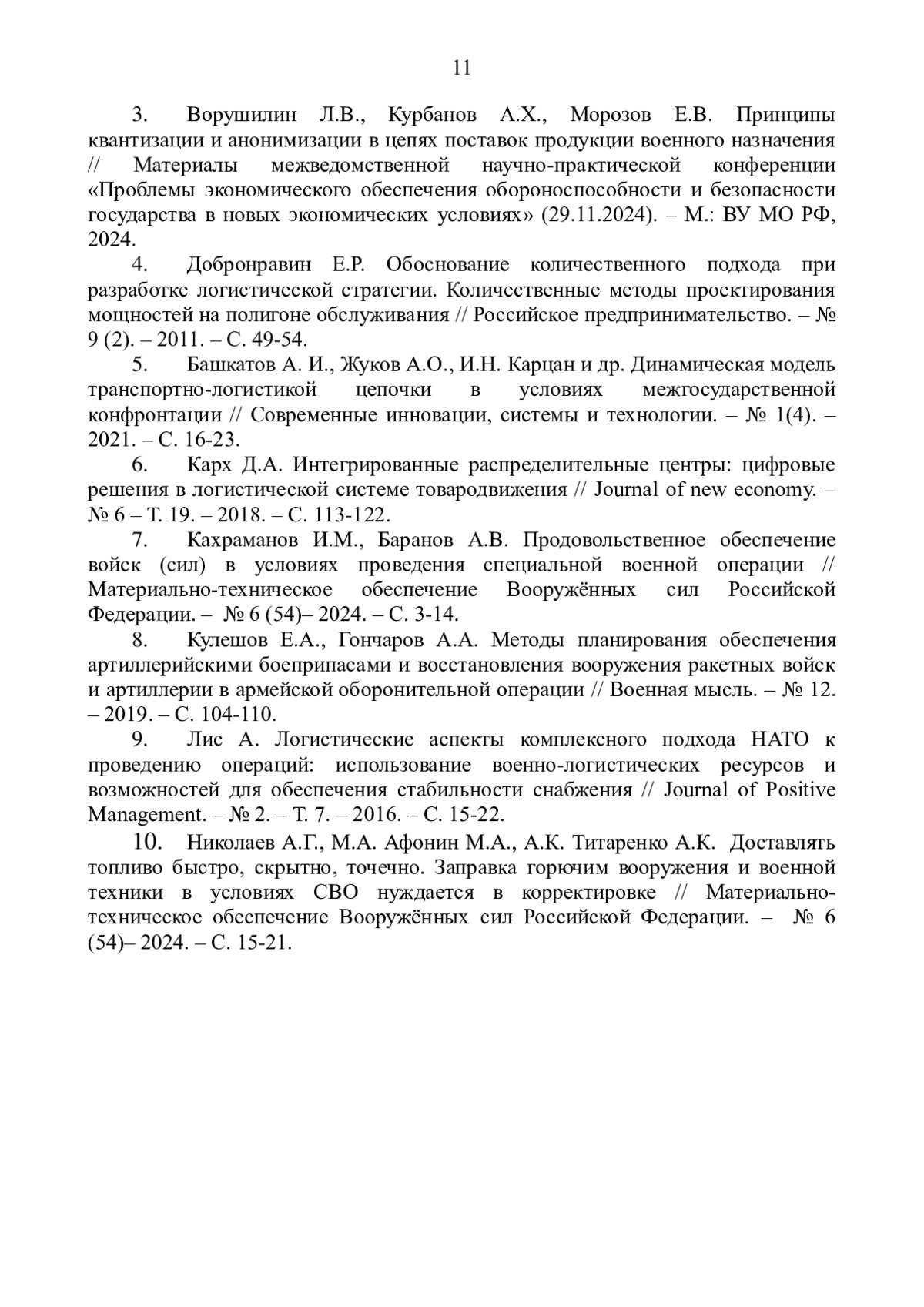 10. Николаев А.Г., М.А. Афонин М.А., А.К. Титаренко А.К. Доставлять топливо быстро, скрытно, точечно. Заправка горючим вооружения и военной техники в условиях “СВО” нуждается в корректировке // Материально - техническое обеспечение Вооружённых сил Российской Федерации. - № 6(54)- 2024. - С. 15-21. EDN: QUMBGW