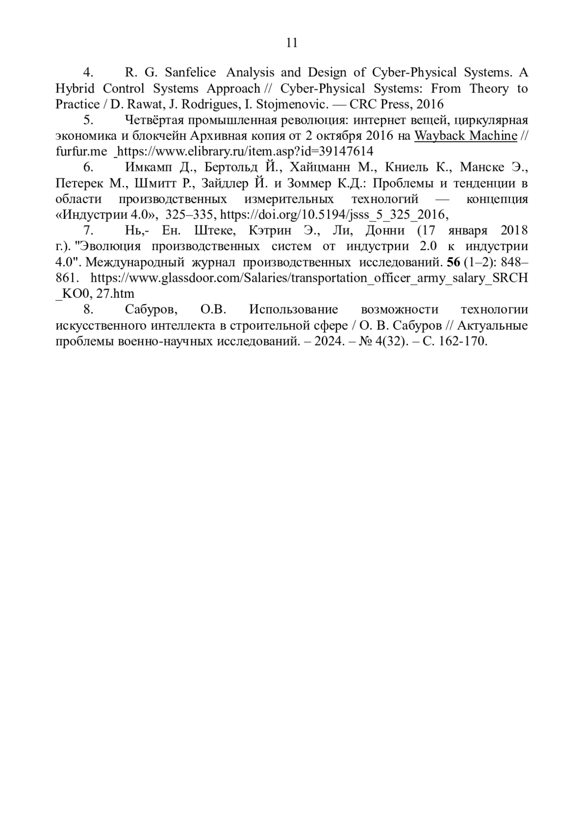 6. Имкамп Д., Бертольд Й., Хайцманн М., Книель К., Манске Э., Петерек М., Шмитт Р., Зайдлер Й. и Зоммер К.Д.: Проблемы и тенденции в области производственных измерительных технологий - концепция “Индустрии 4.0”, 325-335,. DOI: 10.5194/jsss_5_325_2016