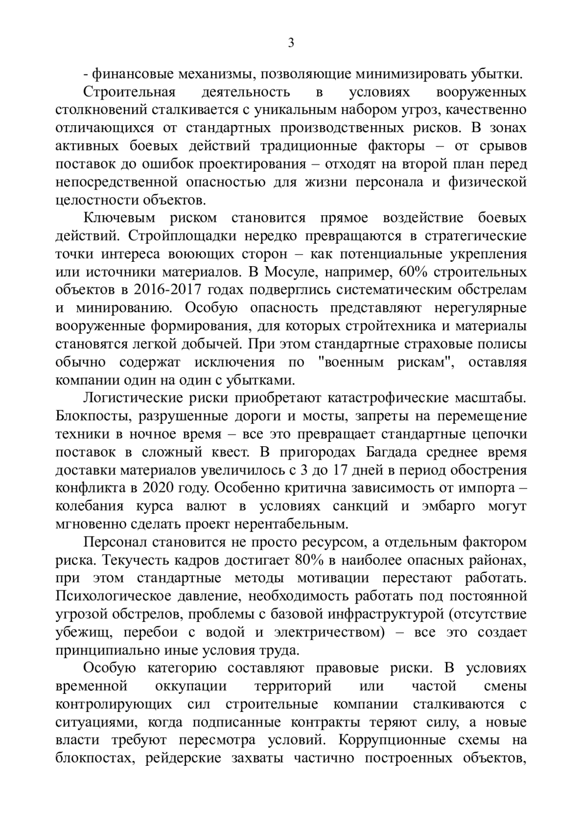 Строительство в условиях военных конфликтов - это экстремальный вызов, требующий нестандартных решений. Когда вокруг рушатся здания, перекрываются дороги и ежедневно возникает угроза жизни работников, традиционные подходы к управлению проектами оказываются бесполезными. Ирак, переживший десятилетия войн и нестабильности, стал уникальной лабораторией для разработки методов защиты строительных объектов в боевых условиях. Здесь, среди разрухи и хаоса, рождались инновационные стратегии, позволившие не просто выживать, но и успешно завершать сложнейшие проекты. Проблема безопасности стройплощадок в зонах конфликтов выходит далеко за рамки обычного риск - менеджмента. Это комплексная задача, где физическая защита объектов переплетается с логистической смекалкой, финансовыми страховками и психологической подготовкой персонала. Как организовать бесперебойные поставки материалов, когда дороги перекрыты военными? Какие инженерные решения могут уберечь объект от обстрелов? Как быстро эвакуировать сотни рабочих при внезапной эскалации боевых действий? Опыт Иракских строителей, закаленный в условиях реальных боевых действий, предлагает неожиданные и эффективные ответы на эти вопросы. От создания мобильных складов в “зеленых зонах” до разработки дублирующих систем энергоснабжения - эти решения уже прошли проверку огнем. Особый интерес представляют кейсы реконструкции Мосула и Багдада, где строительным компаниям удалось не только минимизировать потери, но и существенно сократить сроки работ, несмотря на продолжающиеся столкновения.