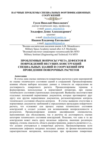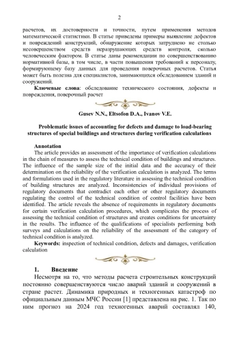 26. Гусев Н.Н., Старчуков Д.С., Соломахин А.С. К вопросу определения сроков обследования технического состояния зданий и сооружений. Строительные материалы, оборудование, технологии 21 века. Кровельные материалы №2, 2021. - М.: “ООО” “Композит 21 век”, с. 35-39.