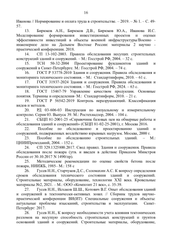 5. Бирюков, Ю. А. Влияния повреждений строительных конструкций на состояние зданий и сооружений / Ю. А. Бирюков, И. С. Титеев // Коммунально - эксплуатационное обеспечение военной инфраструктуры: горизонты будущего: Сборник статей, Санкт-Петербург, 17 августа 2023 года. - Санкт-Петербург: 2023. - С. 190-197. EDN: SYROXL
