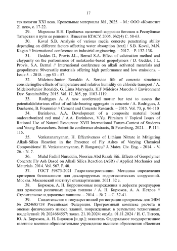 29. Морозова Н.Н. Проблема щелочной коррозии бетонов в Республике Татарстан и пути ее решения. Известия “КГАСУ”, 2005. №2(4) С. 58-63.