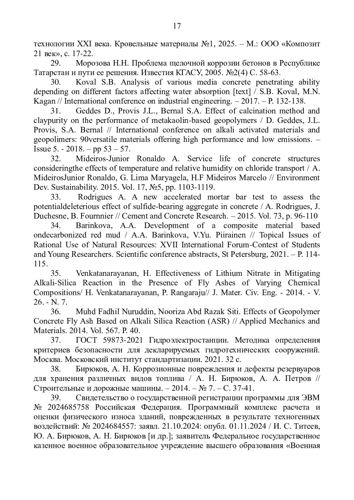 33. Rodrigues A. A new accelerated mortar bar test to assess the potentialdeleterious effect of sulfide - bearing aggregate in concrete / A. Rodrigues, J. Duchesne, B. Fournnier // Cement and Concrete Research. - 2015. Vol. 73, р. 96-110.