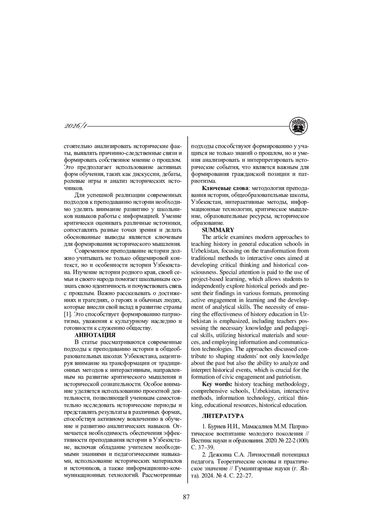 В условиях глобализации и стремительно меняющегося мира, преподавание истории в школах Узбекистана переживает период трансформации.