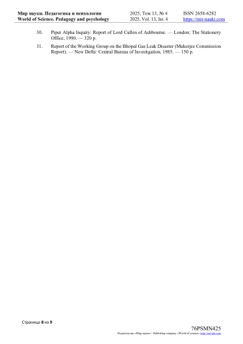 9. Guldenmund, F.W. The Nature of Safety Culture: A Review of Theory and Research // Safety Science. - 2000. - Vol. 34, No. 1-3. - P. 215-257.