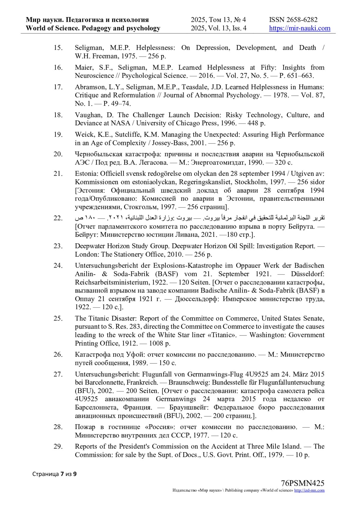 16. Maier, S.F., Seligman, M.E.P. Learned Helplessness at Fifty: Insights from Neuroscience // Psychological Science. - 2016. - Vol. 27, No. 5. - P. 651-663.