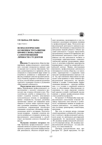 12. Хребина С.В., Хребин М.В. Психологические условия развития эффективных поведенческих паттернов студентов в процессе профессионального обучения // Гуманитарные науки (г.Ялта). 2025. № 2 (70). С. 109-115.