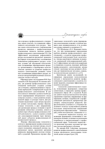 В статье раскрывается необходимость психологической поддержки развития профессионального самоотношения студентов. Обосновывается роль подготовки в процессе профессиональной деятельности. Авторы выделяют профессиональное самоотношение как категорию психологии профессиональной деятельности. Описывается категория «профессиональное самоотношение» и определяется ее содержание. Обозначается траектория развития профессионального самоотношения. Предлагаются психологические рекомендации по развитию профессионального самоотношения у студентов. Выделяются стратегии профессионального становления студента в процессе профессионального образования. Обобщаются эффективные технологии и методики развития профессионального самоотношения у студентов.