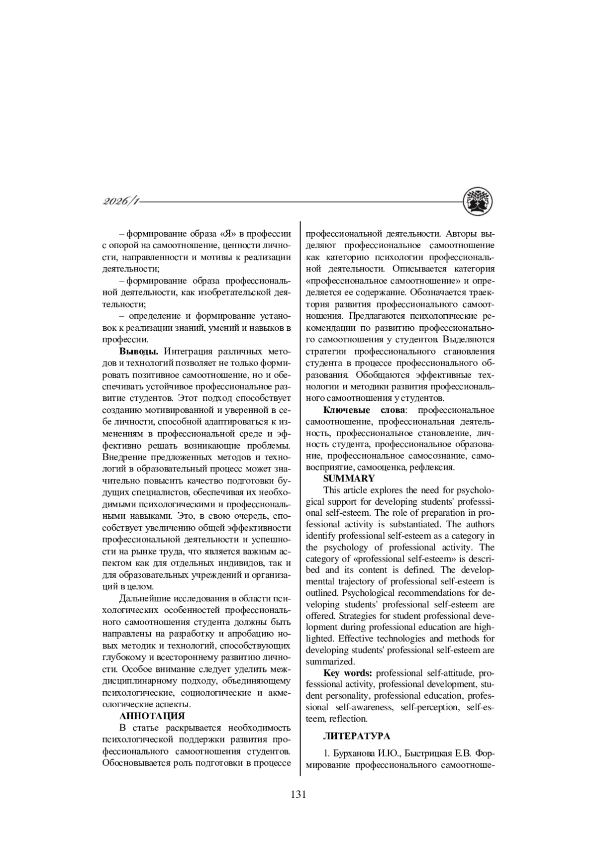1. Бурханова И. Ю., Быстрицкая Е. В. Формирование профессионального самоотношения у студентов-спортивных педагогов // Вестник Самарского университета. История, педагогика, филология. - 2023. Т. 29. №. 2. С. 67-72.