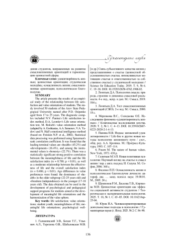 4. Меренкова В.С., Солодкова О.Е. Исследование феномена “удовлетворенность жизнью” // Комплексные исследования детства. 2020. Т. 2, № 1. С. 4-13. DOI: 10.33910/2687-0223-2020-2-1-4-13