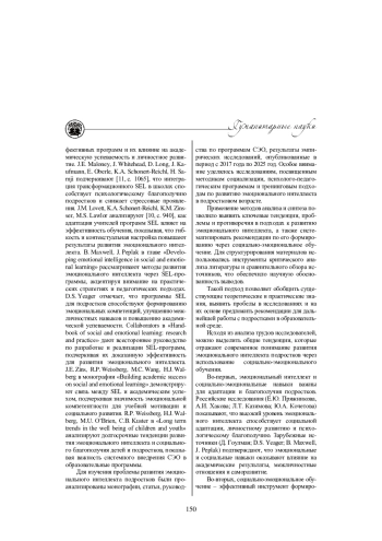 11. Maloney, J.E., Whitehead, J., Long D., Kaufmann, J., Oberle, E., Schonert Reichl, K.A., Samji, H. Supporting adolescent well being at school: Integrating transformative social and emotional learning and trauma informed education // Social and Emotional Learning: Research, Practice, and Policy. 2024. Vol. 4. P. 1063-1075.